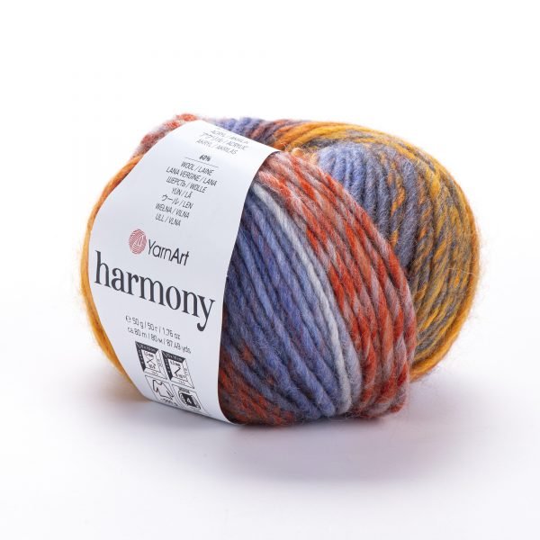 YarnArt Harmony Strickgarn. Zusammensetzung: 60% Wolle - 40% Acryl. Die Melangefasern dieses Garns sind voller Überraschungen. Sie werden Sie nicht nur mit ihrer Leichtigkeit überraschen, sondern Sie auch mit Farbe überraschen.
