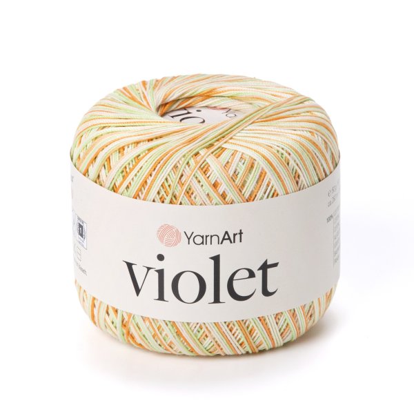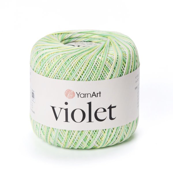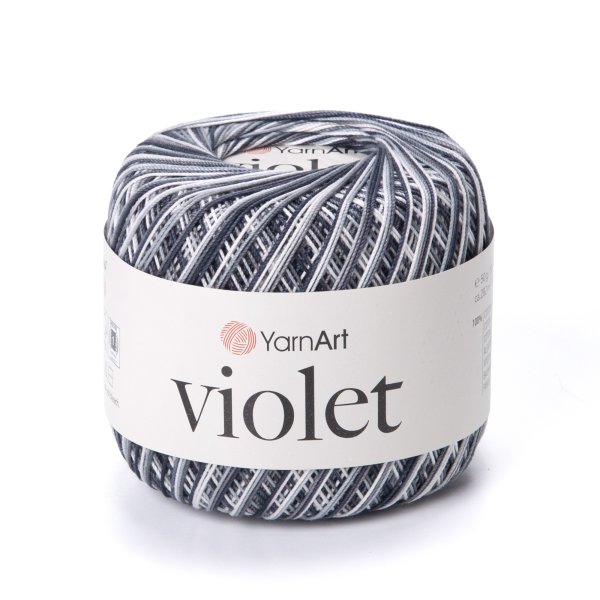 Violet, Violet Melange Garn 6 x 50 g Aufgrund der großen Farbvielfalt ein sehr beliebtes Garn, besteht auch aus 100% mercerisierter Baumwolle. Das charakteristische Merkmal dieser Faser ist eine dichte, gleichmäßige Drehung und geringe Dicke. In dichten Mustern kann ein solches Garn steifer sein, diese Eigenschaft kann als Vorteil genutzt werden, um Schuhe, Handtaschen, Ornamente und andere Produkte herzustellen, die ihre Form behalten sollen. Wenn Sie mit diesem Garn ein Kleid oder einen Sommerpullover stricken möchten, empfehlen wir ein lockereres Muster, das für ausreichende Weichheit des Produkts sorgt. Durch das Zwirnen behalten die fertigen Produkte auch nach vielen Wäschen jedes Muster bei. Im Allgemeinen wird Garn zum Stricken von Servietten, Schals und Kleidung mit Spitzenmustern (einschließlich Kinder) empfohlen.